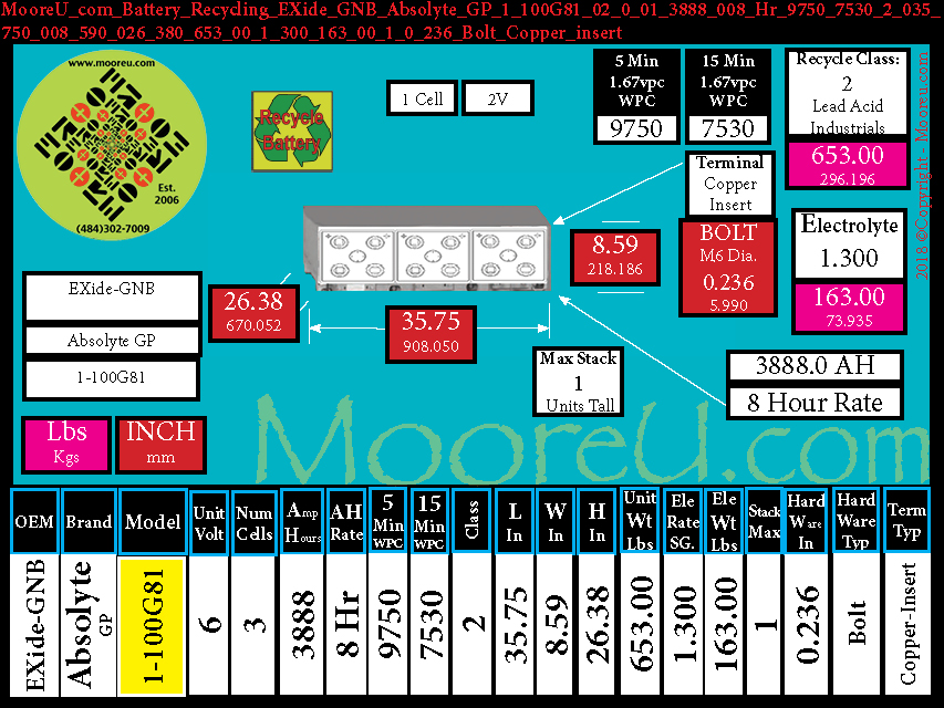 Battery Recycle EXide GNB Absolyte GP Series 1 100G81 M6
