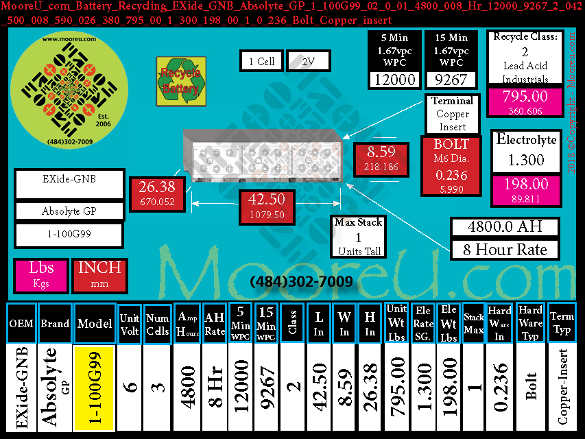Battery Recycle EXide GNB Absolyte GP Series 1 100G99 M6