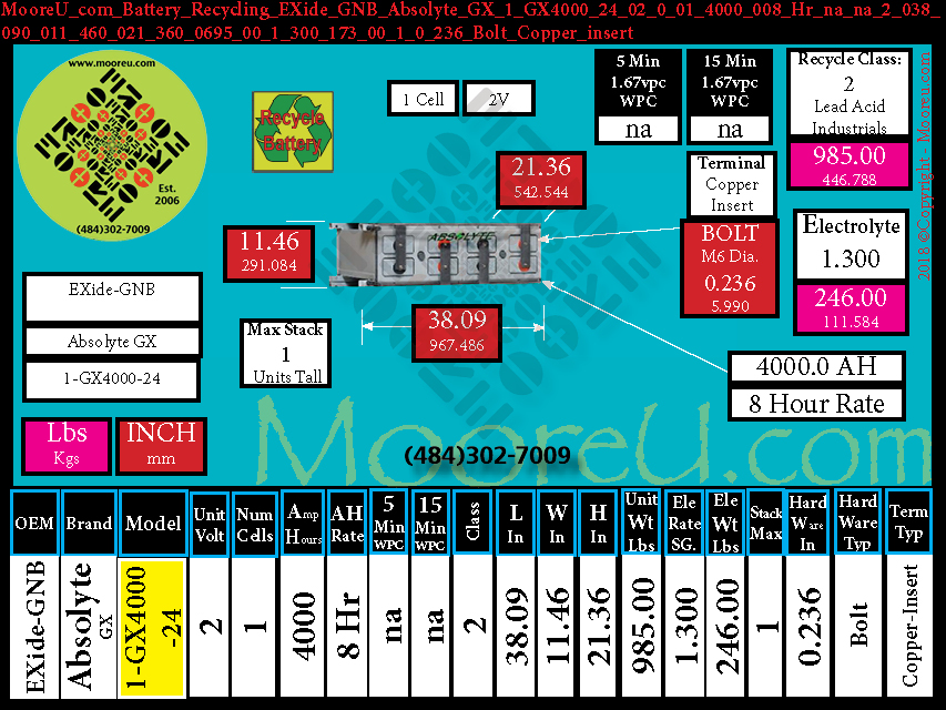 Battery Recycle EXide GNB Absolyte GX Series 1 GX4000 M6