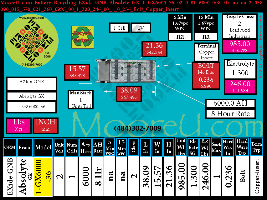 Technology:Battery Recycle EXide GNB Absolyte GX Series 1 GX6000 M6