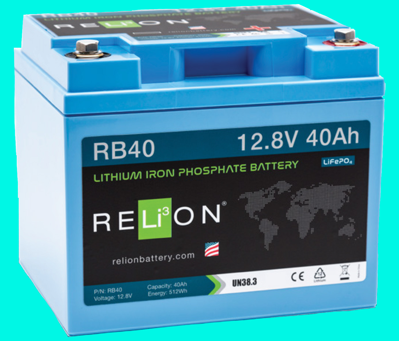Technology:Battery Recycle Relion LFP Cylindrical Series 12 8V 40AH RB40 M8