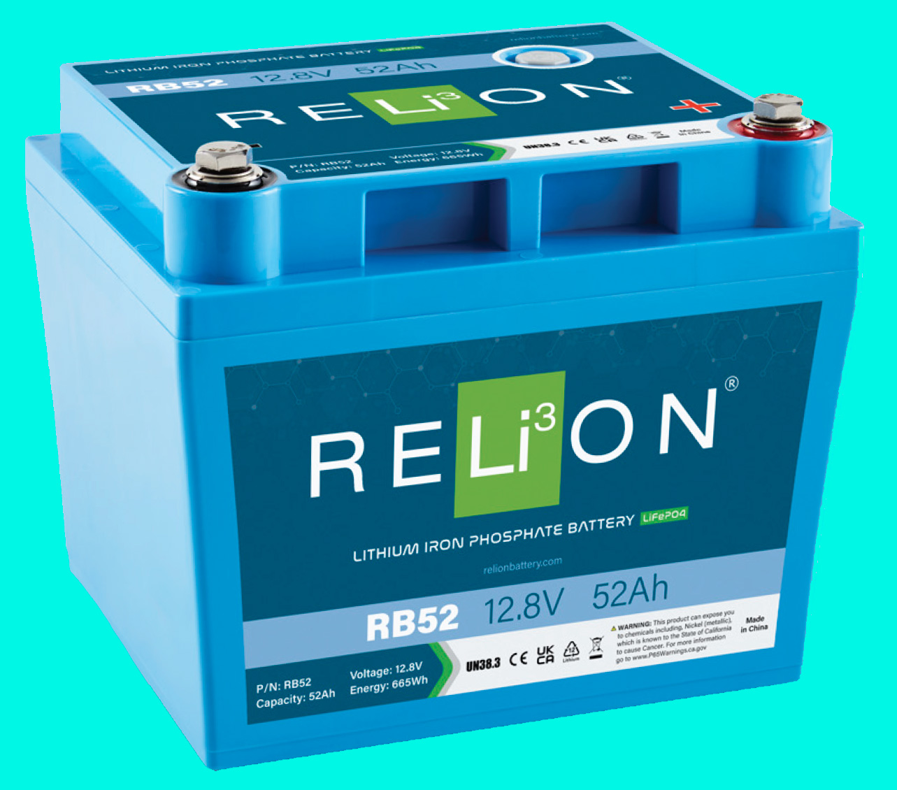 Technology:Battery Recycle Relion LFP Cylindrical Series 12 8V 52AH RB52 M8