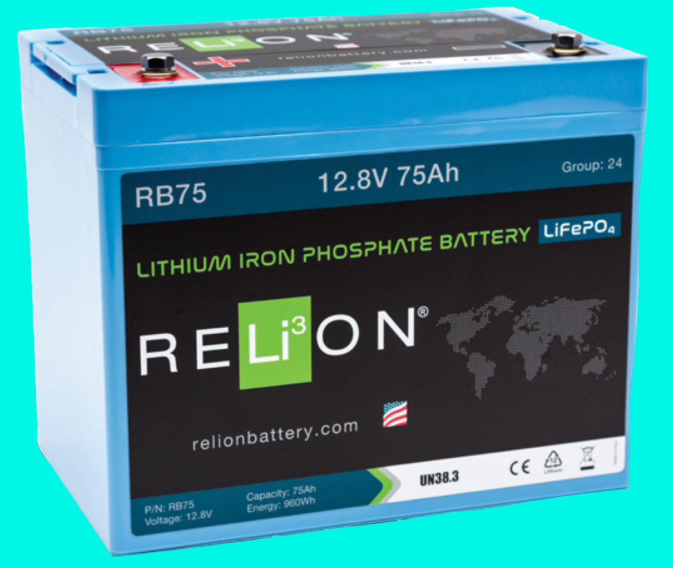 Technology:Battery Recycle Relion LFP Cylindrical Series 12 8V 75AH RB75 M8