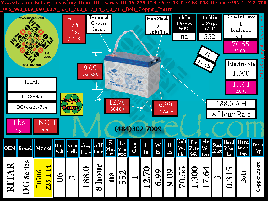 Battery Recycle Ritar DG Series DG06 225 V0 F10 T
