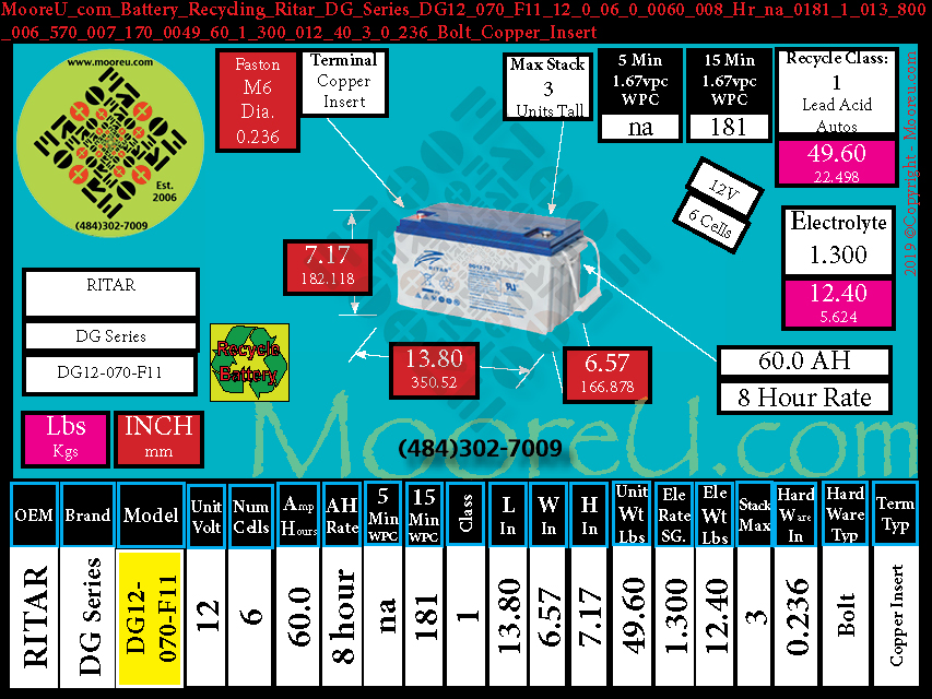Technology:Battery Recycle Ritar DG Series DG12 070 V0 F11 T