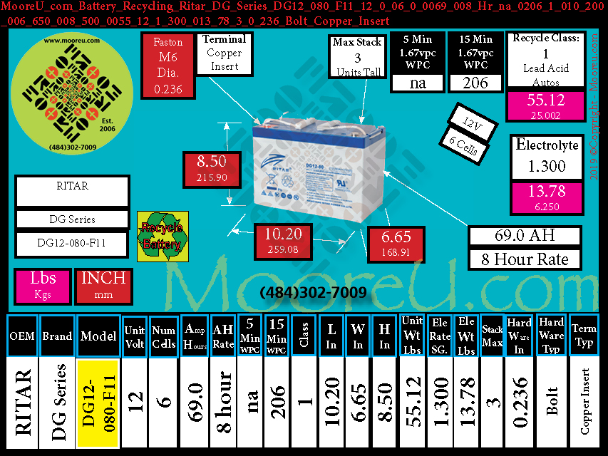 Technology:Battery Recycle Ritar DG Series DG12 080 V0 F11 T