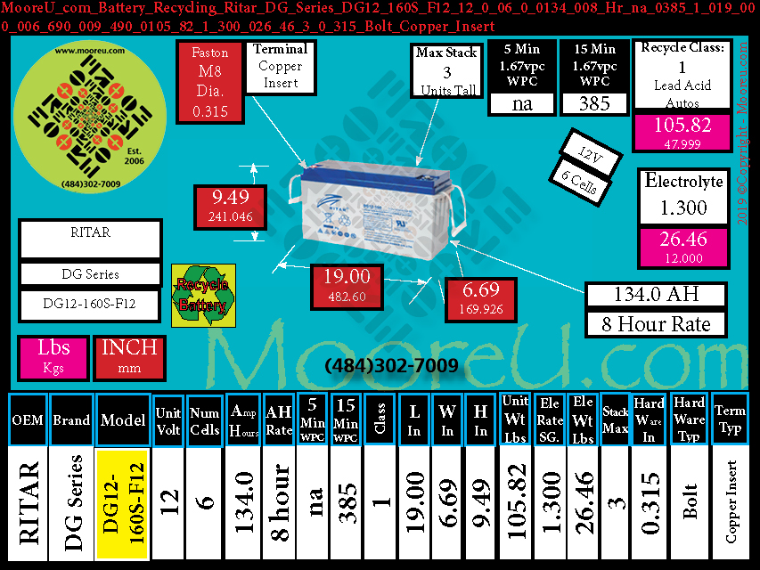 Technology:Battery Recycle Ritar DG Series DG12 160S V0 F12 T