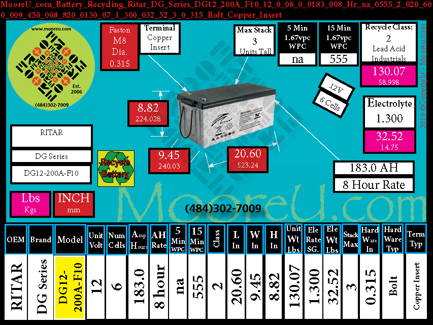Technology:Battery Recycle Ritar DG Series DG12 200S V0 F16 T