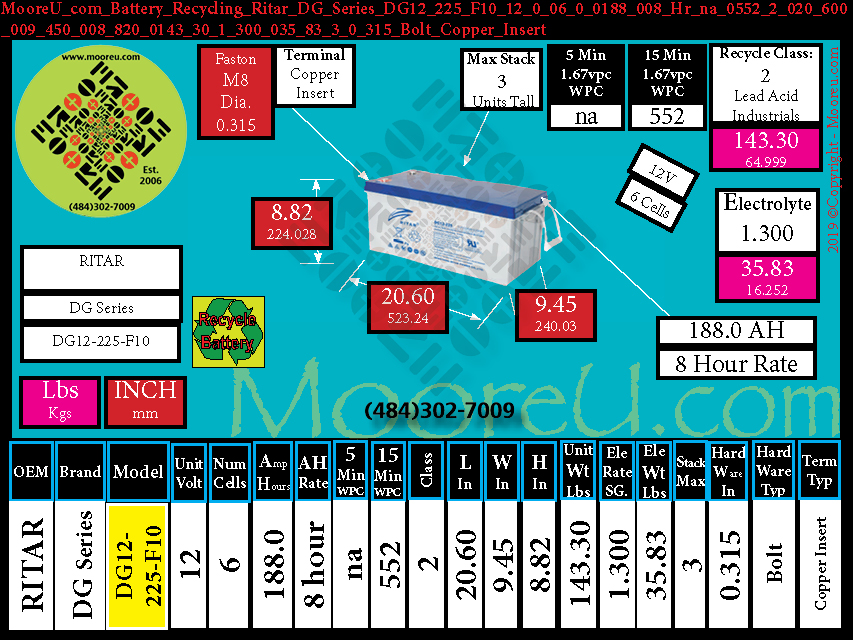Technology:Battery Recycle Ritar DG Series DG12 225S V0 F10 T