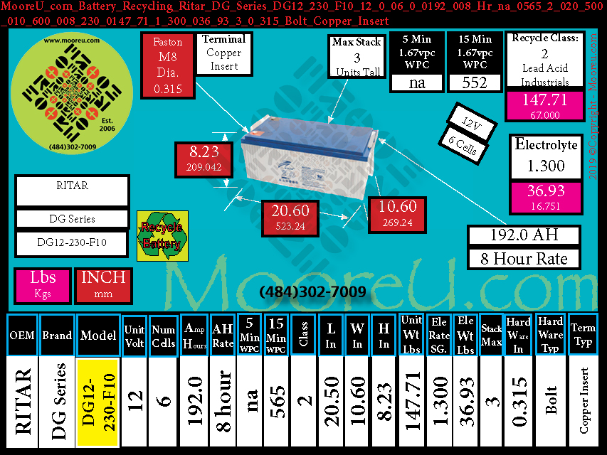 Technology:Battery Recycle Ritar DG Series DG12 230 V0 F12 T