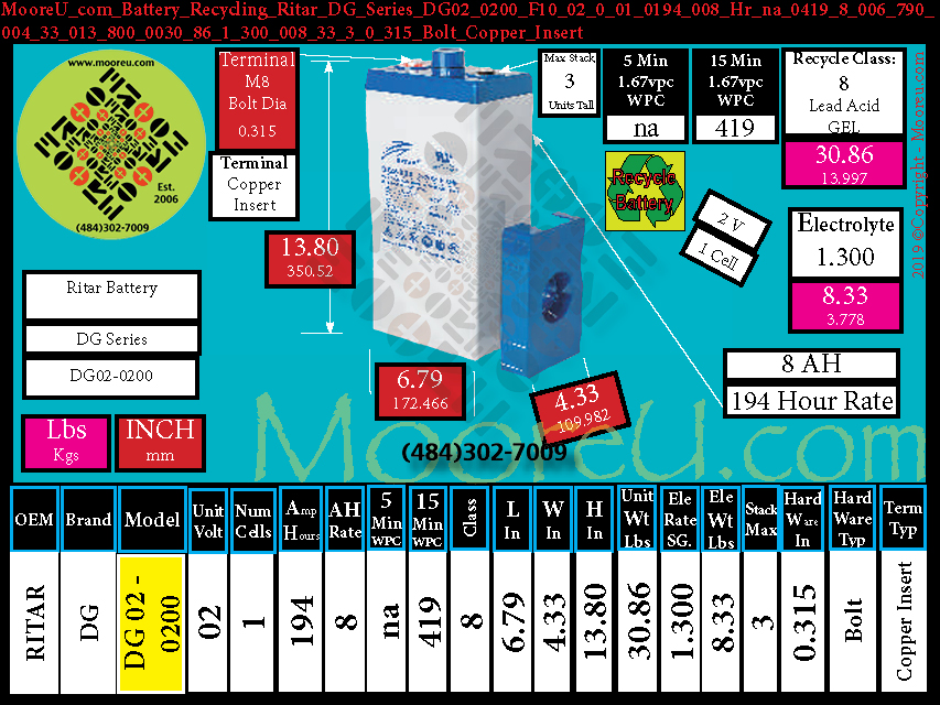 Battery Recycle Ritar DG Series DG2 0200 V0 F10 T