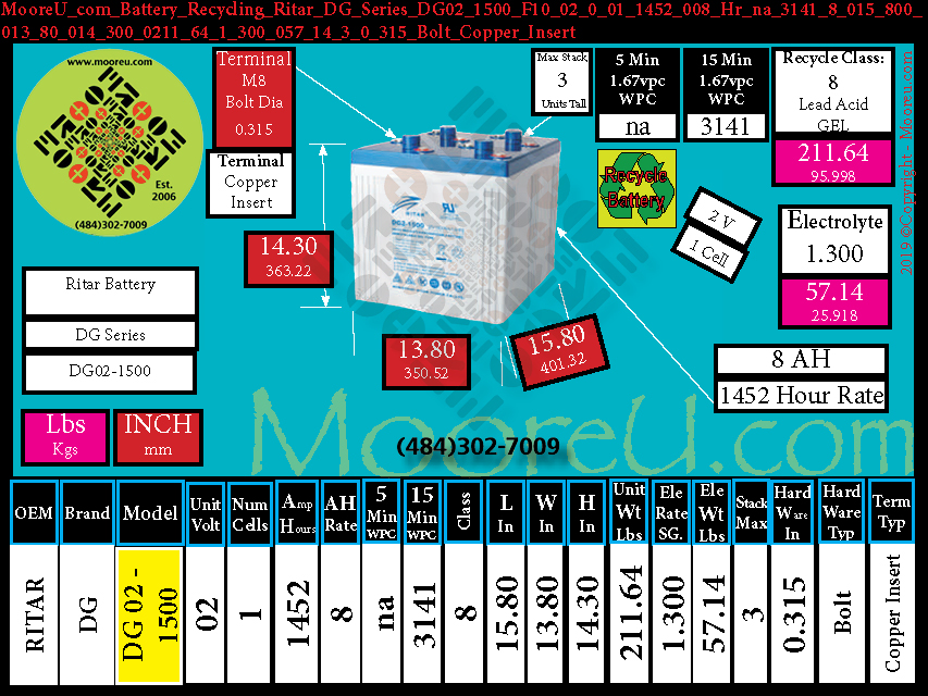 Technology:Battery Recycle Ritar DG Series DG2 1500 V0 F10 T