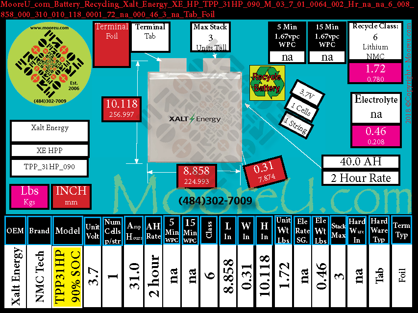 Battery Recycle Xalt Energy 31HP Series TPP 31HP 090 M