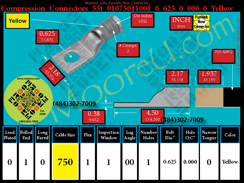Furnish New Compression Lug 55t 01075011001 0 625 0 000 0 Yellow